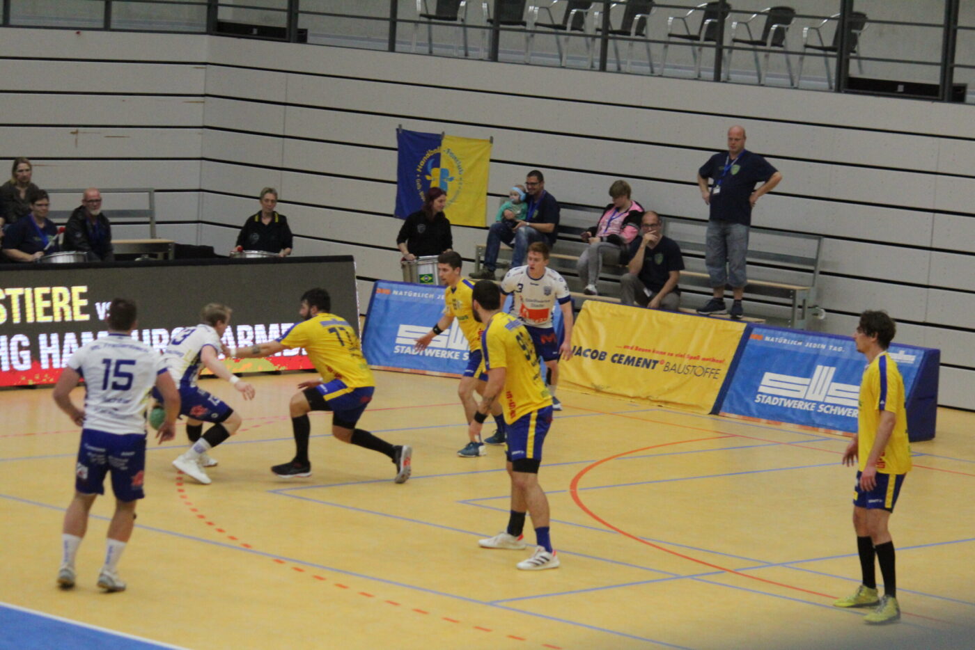 Im MV-Derby verlieren die Mecklenburger Stiere 28:30 (17:13) gegen den Stralsunder HV Schwerin/pb): Diese Heimpartie der Stiere begann verheiĂungsvoll fĂŒr den Gastgeber, nach wenigen Spielminuten stand es schnell 3:0 durch Tore von Tobias GrĂ€mke, Miroslav Nedoma und Kevin Herbst. Ăber die SpielstĂ€nde 3:1, 5:2, 6:3, 6:4, 7:4, 7:5, 8:5 waren die Schweriner gut im Spiel.