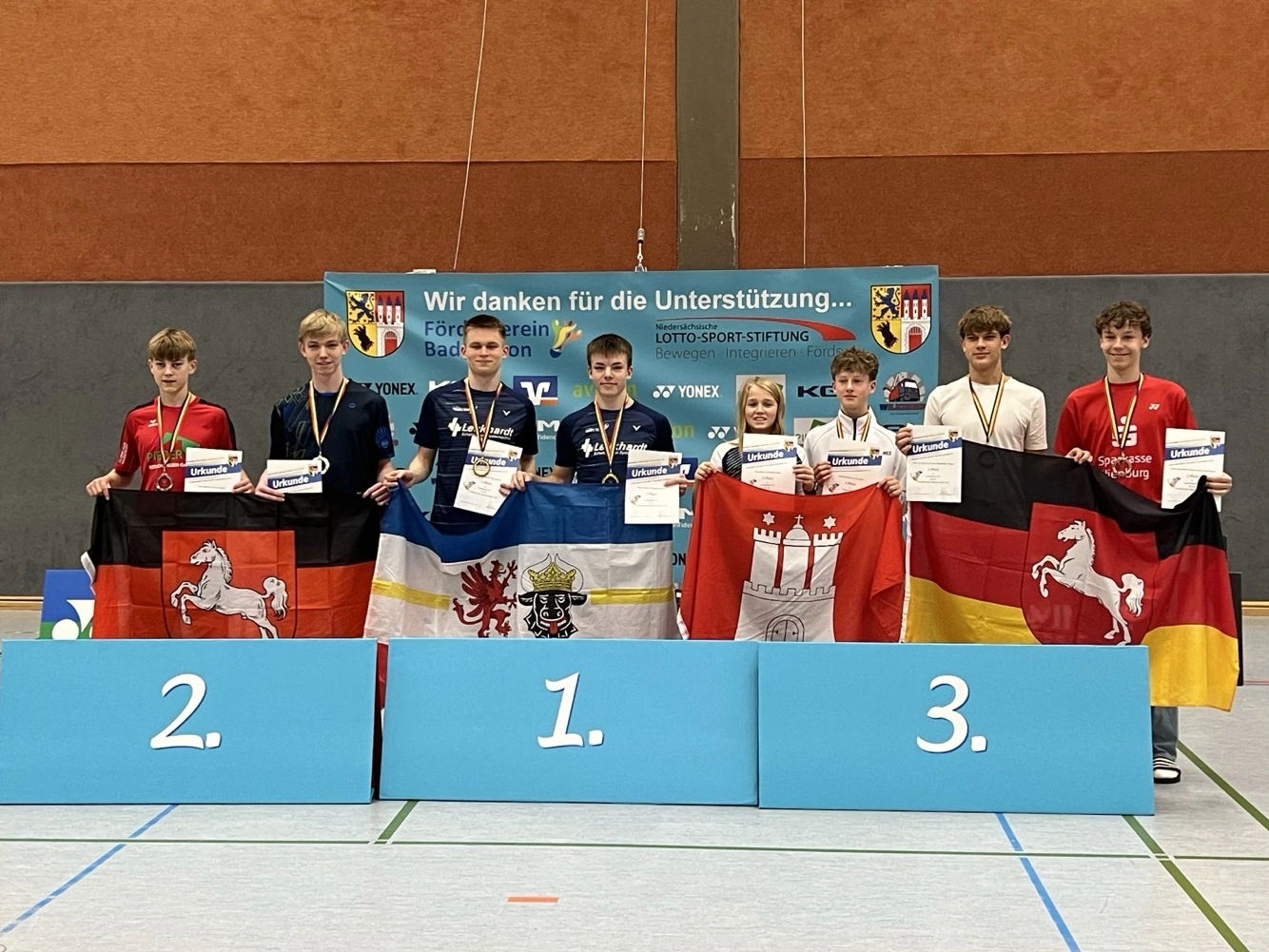Ganz anders sieht es derweil bei unseren Nachbarn in Berlin und Hamburg aus. Letztere bringen mit ihrem Stützpunkt am Alten Teichweg regelmäßig Athletinnen und Athleten in die nationale Spitze. Auch dieses Mal war es nicht anders. So konnten sie sich mit haushohem Abstand erwartbar den Sonderpokal für den erfolgreichsten Landesverband der Gruppe Nord sichern. In diesem Zusammenhang kommt man nicht herum, ein weiteres Mal den dreifache Titelgewinn von Youngstar Luo (TSG Bergedorf) zu erwähnen. Oder die Leistung der Einzelspezialistin Mira Tai Loi. So durfte die 10-Jährige mit einer Sondergenehmigung in der Altersklasse U15 auflaufen. Und nicht nur das: Tai Loi, die bereits in einer reichweitenstarken RTL-Samstagabend-Show Werbung für den Badmintonsport machte, fegte auch noch durch die gesamte Konkurrenz und holte sich hier als jüngste Spielerin überhaupt den Titel.