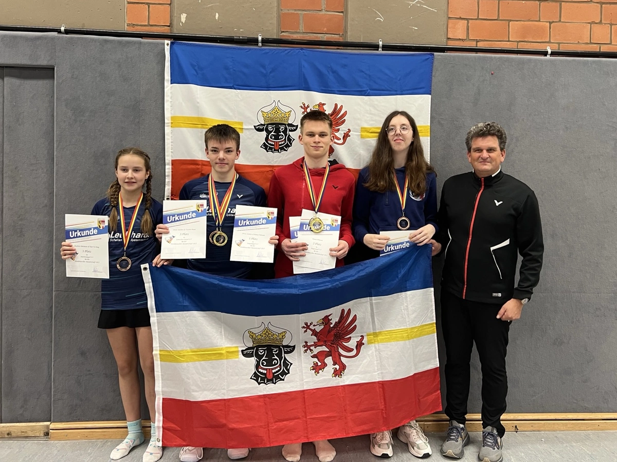 Mit fünf Medaillen und mehreren Viertelfinalteilnahmen geht der Badmintonverband Mecklenburg-Vorpommern historisch erfolgreich aus diesen Meisterschaften hervor. Gleiches gilt für den BSC 95 Schwerin. Einordnend erklärt BSC-Pressewart und Spielerinnenvater Patrick Dettmann: „Die Ergebnisse unserer Athlet:innen sind keine Selbstverständlichkeit. Sie sind vor allem auf die hohe Leistungsbereitschaft und Trainingsmentalität unserer Jungs und Mädels zurückzuführen. Das kann gar nicht genug gewürdigt werden. Zumal wir im Vergleich zu anderen Landesverbänden nicht auf eine Stützpunktstruktur samt Honorar- und Landestrainer zugreifen können. Bei uns ist alles ehrenamtlich organisiert. Also: Hochachtung!“