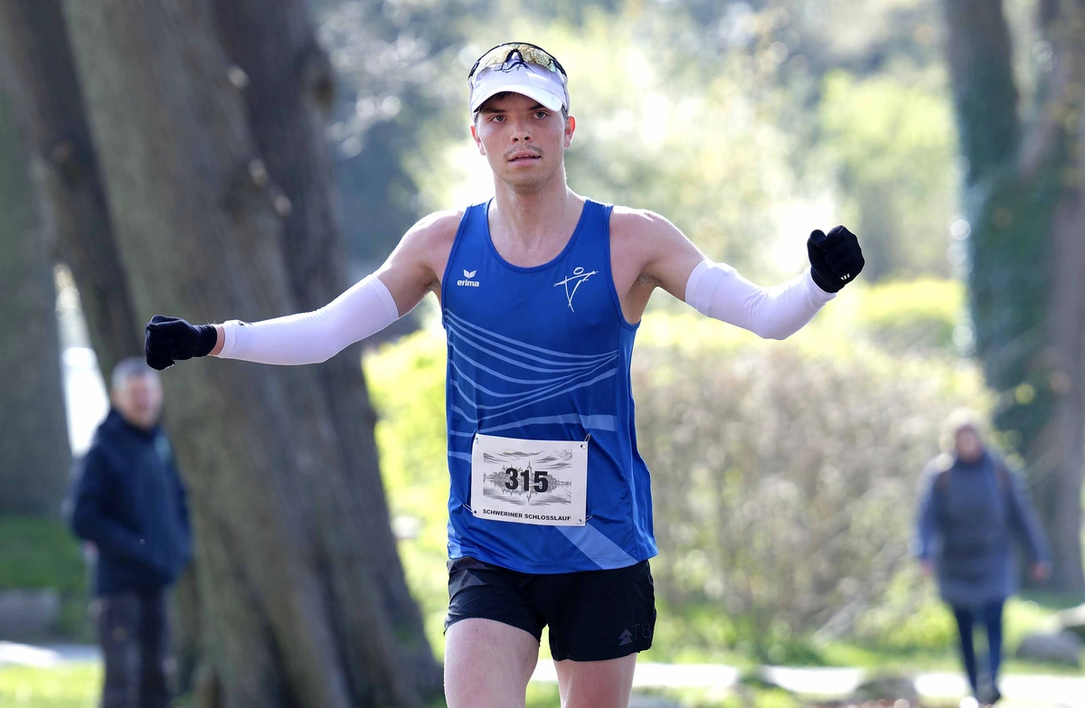 Schon früh setzte sich Chris-Marvin Scheffler entscheidend vom Feld ab und gewann souverän in starken 48:57 Minuten, der drittbesten Zeit in der Geschichte des Schlosslaufs. Vereinskamerad Finley Wegner komplettierte in 52:37 Minuten den Doppelsieg und stellte zugleich einen neuen Altersklassenrekord (MJ U20) auf. Platz drei ging an Paul Hilgenstock (TC FIKO Rostock), der in 54:35 Minuten auch seine Altersklasse M30 gewann.
