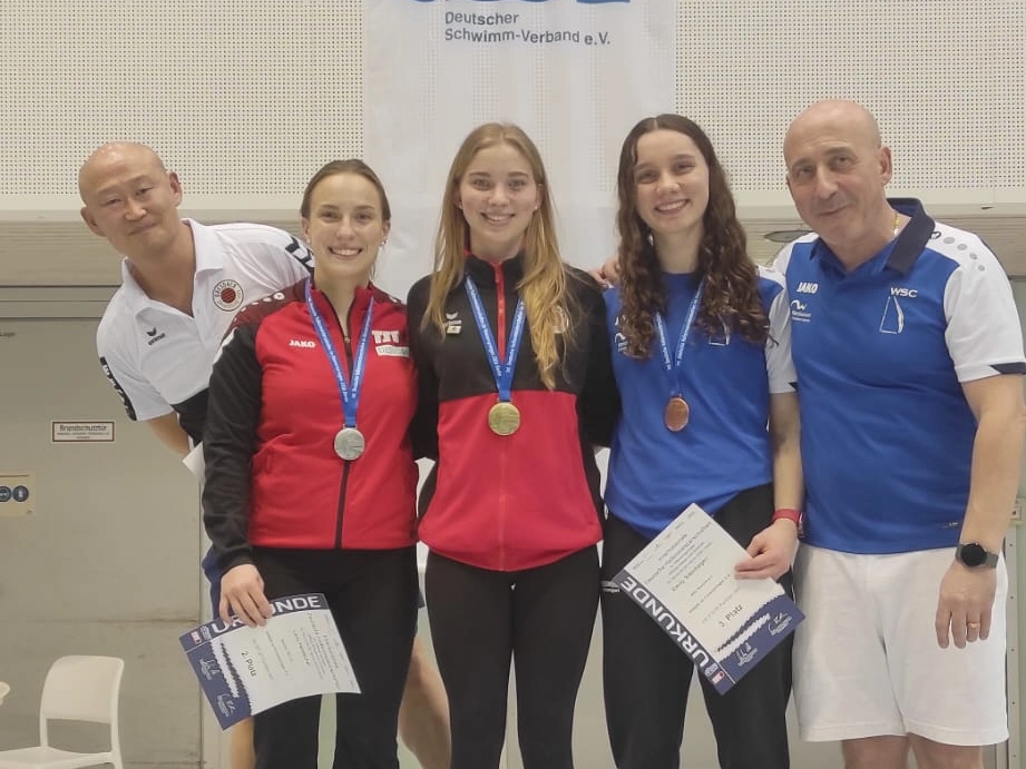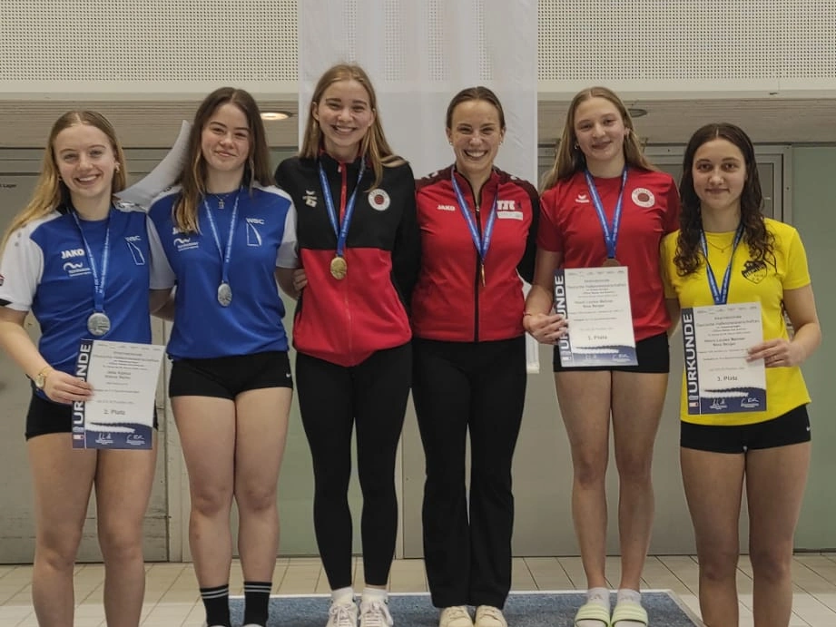 Die erfolgshungrigen Sportlerinnen und Sportler sowie das Trainerteam des WSC Rostock können mit Stolz auf ein äußerst erfolgreiches Wettkampfwochenende bei den Offenen Internationalen Deutschen Wintermeisterschaften in Berlin zurückblicken. Jella Kiphut, Aliana, Zoé, Finn Awe, Emily Steinhagen, Mahi Gruchow, Espen Prenzyna und Ole Rösler sicherten sich gemeinsam mit den Coaches Lukas Orlowski und Michail Sachiasvili, sowie Slava Khamulkin insgesamt acht Medaillen, zahlreiche Normerfüllungen sowie Empfehlungen für internationale Wettbewerbe. Darüber hinaus beeindruckte das Team mit mehreren Weltklasse-Sprüngen – ein weiteres starkes Zeichen für die hervorragende Teamarbeit.