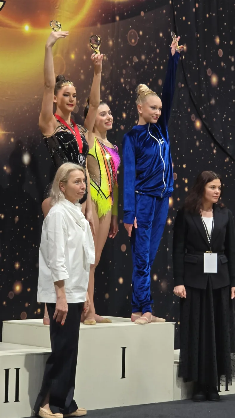 Trotz des anspruchsvollen Teilnehmerfeldes präsentierten sich die Schweriner Sportlerinnen selbstbewusst und leistungsstark. Besonders erfolgreich war Vira Kishchenko (Jahrgang 2014), die sich im Mehrkampf den dritten Platz sicherte und zudem mit dem Ball Zweite sowie mit den Keulen Dritte wurde. Ebenfalls auf dem Podium stand Daria Serdiuk (2011), die im Mehrkampf Rang drei belegte. Ksenia Iovu (2010) verpasste als Vierte nur knapp das Podest, glänzte aber mit Platz zwei in der Ball-Übung und wurde zusätzlich vom Publikum ausgezeichnet – eine besondere Ehrung, bei der sie mit Krone und Pokal prämiert wurde.