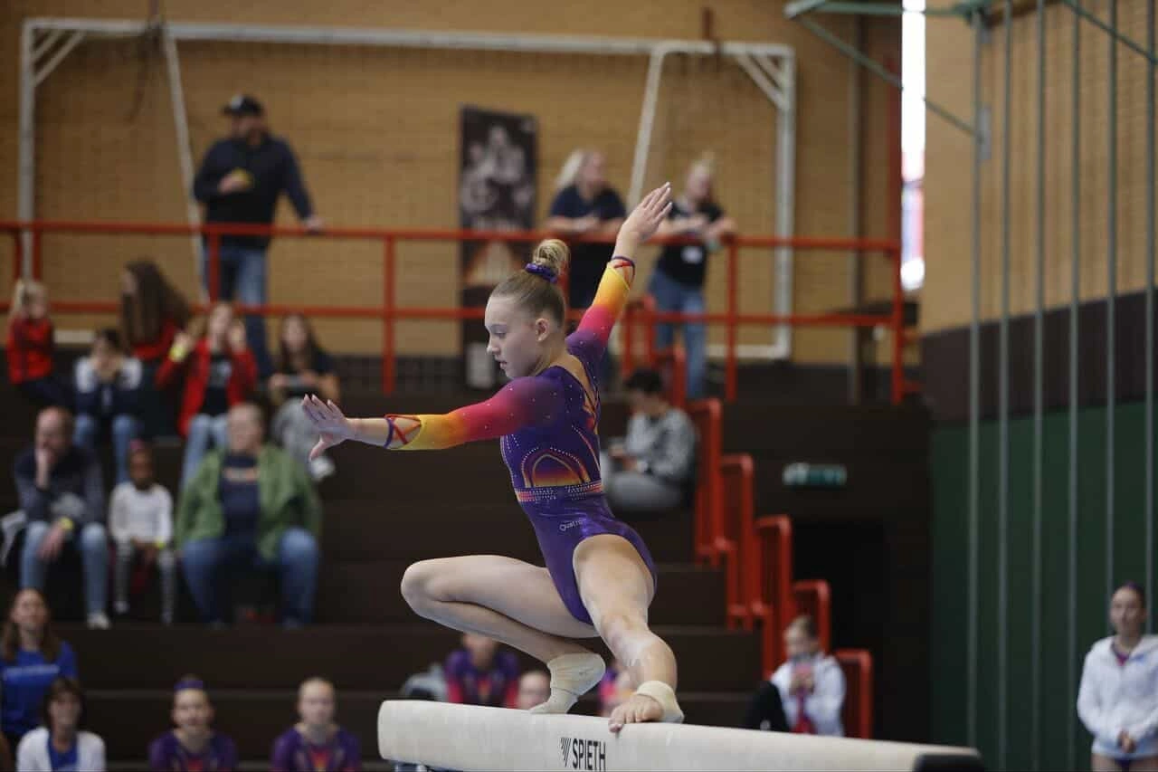 Leni Böhm turnt im Ligabetrieb mittlerweile für den SV Großhansdorf (Schleswig-Holstein) in der Regionalliga. Fünf Einsätze hatte sie auf der vierthöchsten nationalen Wettkampfebene in der vergangenen Saison. Zwar kam ihr Team 2025 „nur“ auf den 7. Tabellenplatz. Jedoch gelang es den Großhansdorfern in einem starken Relegationswettkampf, den Verbleib in der Liga zu sichern. Noch erfolgreicher ging die Saison für Hanna Chrobaks Team aus. Auch sie turnt für den SVG, allerdings für die Erste in der 2. Bundesliga. Die Ausbeute: ein historischer 4. Platz. Leider sollte die junge Rostockerin nur auf zwei Einsätze kommen. Ein Anriss der Außenbänder im Fuß machten ihr schnell einen Strich durch die Rechnung. „Da musste ich leider fast ein halbes Jahr schonen und konnte nicht alles trainieren, leider habe ich dadurch auch Wettkämpfe verpasst“, zeigt sich die 15-Jährige noch etwas wehmütig.
