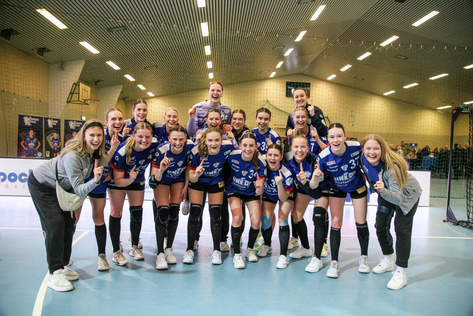 „Mit der Abwehrleistung war ich heute gar nicht unzufrieden, auch wenn wir da viele Pfiffe gegen uns kriegen. Das hat das Bild in der ersten Halbzeit noch etwas getrübt, wobei wir uns dann in der zweiten Hälfte für unser Abwehrspiel auch belohnen. Im Angriffsspiel hatten wir einen guten Fluss drin, so dass wir da auch immer wieder Nadelstiche setzen konnten. Auch wenn wir den Sack vielleicht etwas früher zumachen könnten, haben wir bis zum Schluss einen kühlen Kopf bewahrt,“ so das abschließende Fazit von Rostocks Trainer Buttig.