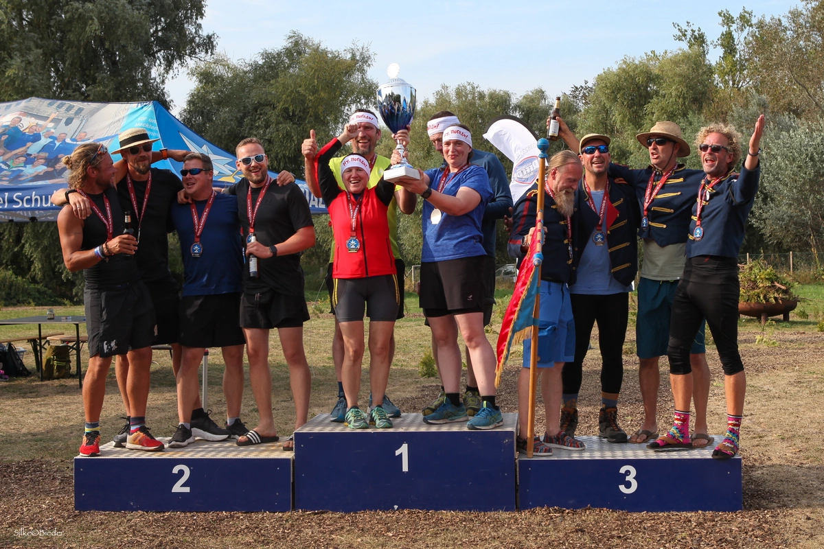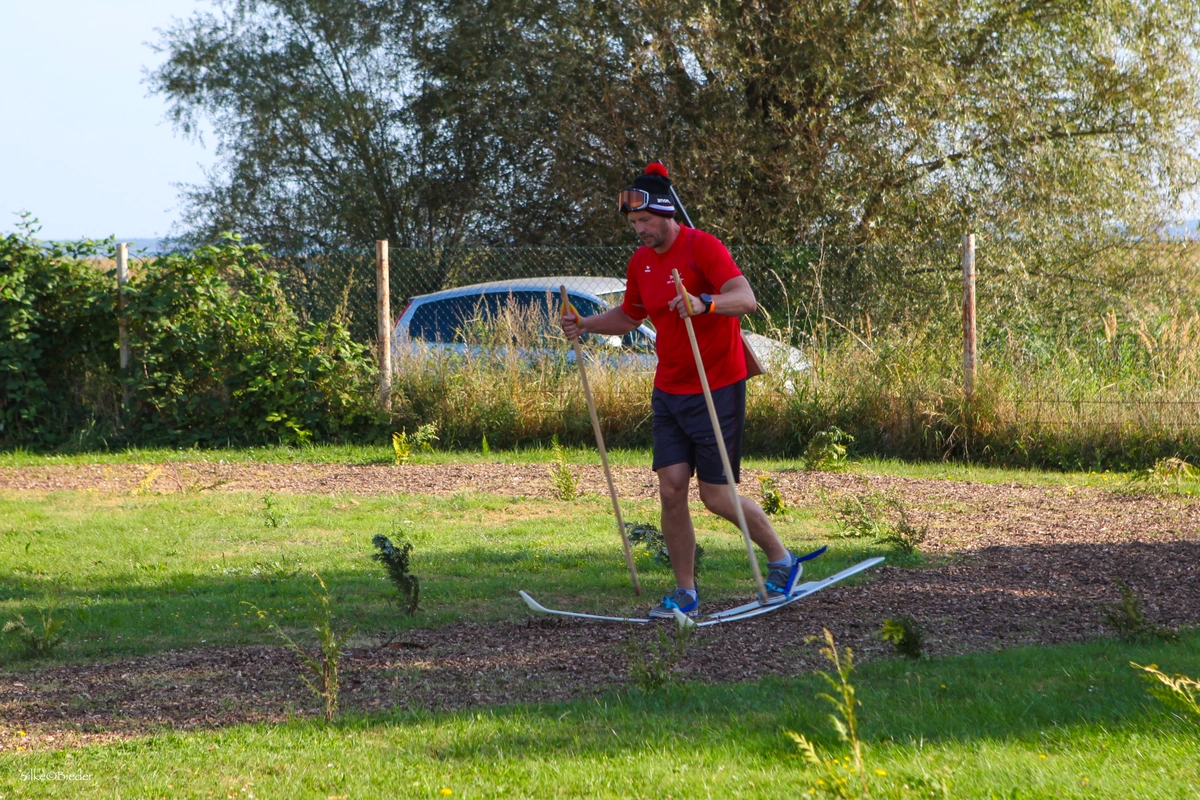 Heute anders als noch bei der Erstauflage ist zudem der Austragungszeitpunkt. 2018 durften sich die 19 mit Begeisterung teilnehmenden Teams bei Februarwetter, samt bitterkaltem Wind und Schneetreiben, vergnügen. Aber Biathlon und Schnee, dass passt bekanntlich nicht zusammen… Naja, zumindest nicht, wenn es nach den Barther Drachenbootfreunden geht. Und außerdem kann das ja jeder. Kramer und Co. legten den Termin also einfach in den Spätsommer. Und der Untergrund? Gelaufen wird auf einer etwas über 300 Meter langen Holzhackschnitzel-Loipe. Die Streckenabschnitte haben dabei so vielversprechende Bezeichnungen wie „Brombeerkurve“, „Ski-Highway“ oder „Olympiaschleife“.