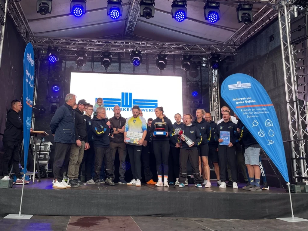 de Zuariner gewinnen auf der Sprintstrecke und sichern sich im Duellrennen beim Stadtwerke Sprint Cup den Pokal des Schweriner Energieversorgers