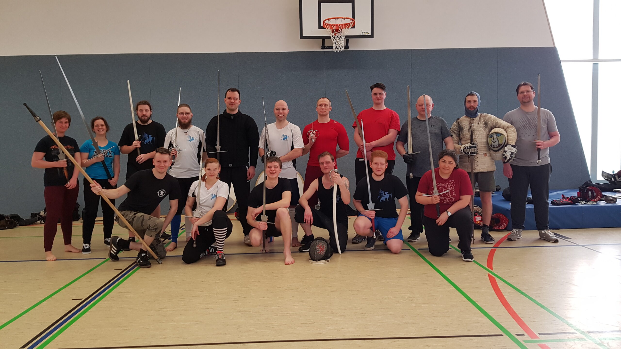 Am 14.04. luden die Schwert-Greifen erneut zu einem Trainingstag ein: Alle HEMA-Sportler waren herzlich eingeladen mit uns gemeinsam zu trainieren, zu schwitzen und sich auszutauschen. Viele HEMA interessierte und GĂ€ste haben die Chance genutzt und sind dem Ruf gefolgt. Trainiert wurde in den verschiedenen Waffensystemen mit Speer, Buckler, Rundschild, dem Rapier, SĂ€bel, Dolch und dem langen Schwert.