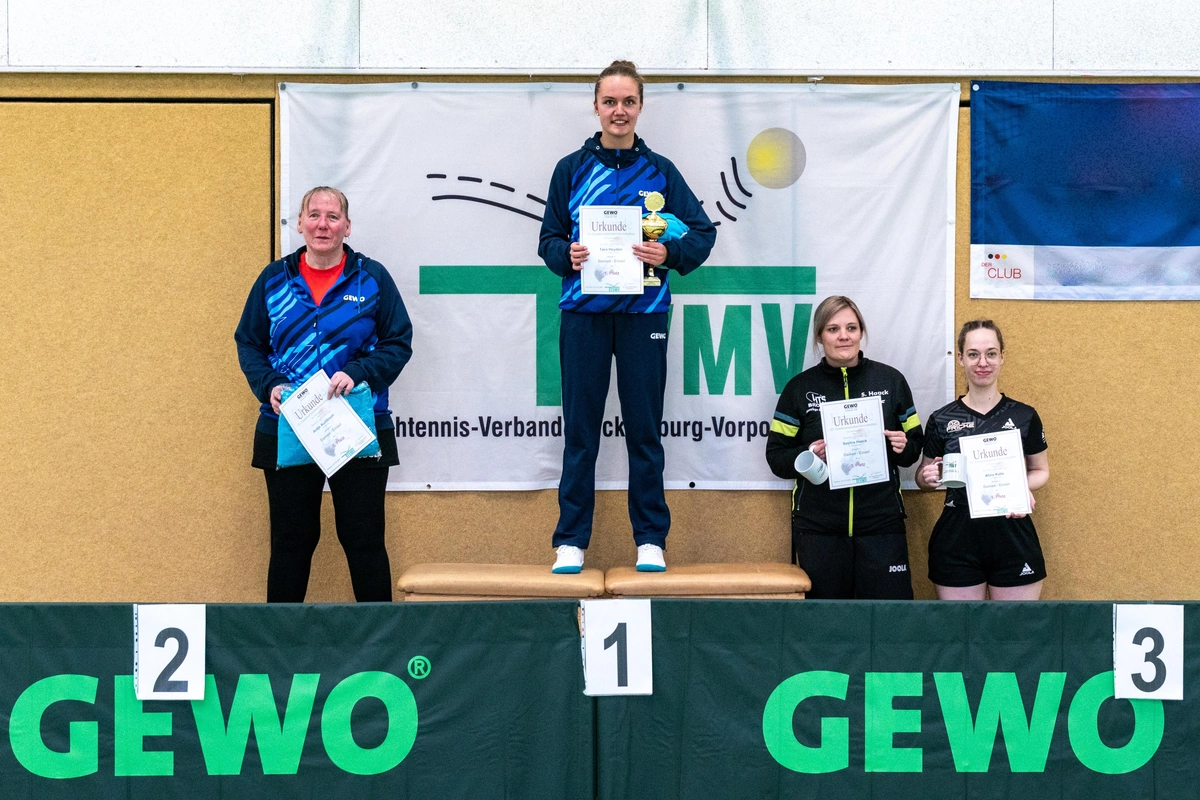 - ​Damen Einzel: Tara Heyden (SV Eintracht Zinnowitz) – Antje Audörsch (Mecklenburger Stiere Schwerin) 4:3