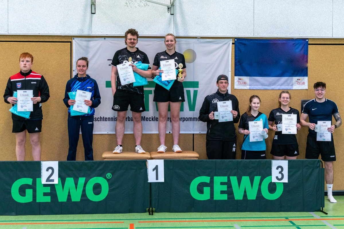 - ​Mixed: Plötz/Dietz (TSV Rostock Süd) – Weber/Heyden (Parchimer SV/SV Eintracht Zinnowitz) 3:1