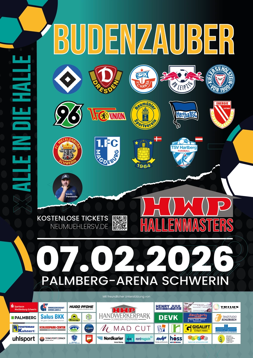 Mit dem HWP-Hallenmasters am 07.02.2026 in der PALMBERG-Arena Schwerin präsentiert der kleine Verein Neumühler SV wieder ein Jugendturnier mit absolutem Alleinstellungsmerkmal in der Region. So werden die Nachwuchsteams RB Leipzig, Hamburger SV, Union Berlin, Holstein Kiel, Hertha BSC, Dynamo Dresden, Energie Cottbus, Hannover 96, 1. FC Magdeburg, Hansa Rostock sowie Brøndby IF aus Dänemark und TSV Hartberg aus Österreich in Schwerin empfangen. Dazu gesellen sich die Lokalmatadoren des Gastgebers Neumühler SV sowie die U13 des FC Mecklenburg-Schwerin. In dem Ambiente der wohl modernsten Arena der Region wird den Zuschauern Spitzenjugendsport geboten, wie an keinem anderen Standort zwischen Neubrandenburg und Hamburg.