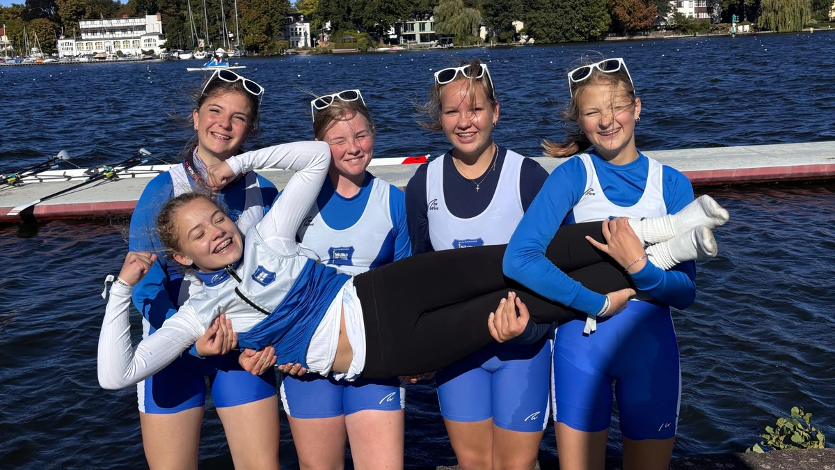 Die große Überraschung ist das U15-Mädchenteam aus Schwerin. Brida Möller, Elisabeth Krüger, Fiona Motullo, Ylvi Hochleutner und Steuerfrau Paula Schöpp erreichen im A-Finale mit dem Gig-Doppelvierer einen zweiten Platz hinter dem Theodor-Heuss-Gymnasium Waltrop. „Das war nicht zu erwarten, es war sehr windig“, sagt Brida. „Beim Rennen hat unser Gegner 500 Meter vor dem Ziel einen Krebs gezogen. Das war unser Glück.“