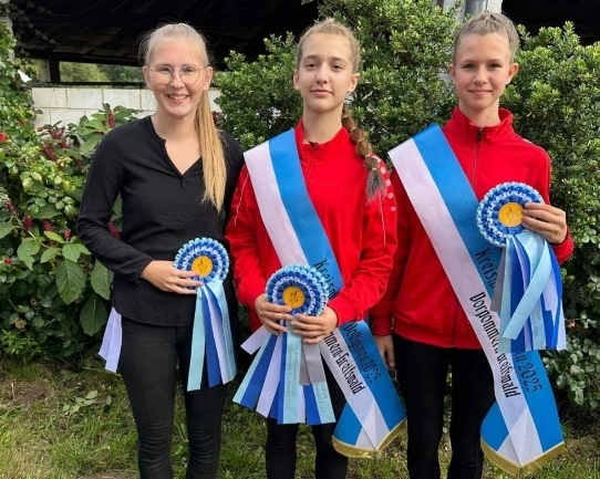 Sportlich bot Horst erneut große Leistungen. Kevin Jürgens vom RSC Greifswalder Bodden Neuenkirchen erreichte mit einer Wertnote von 7,258 den Sieg im Einzel der Klasse M. In der Nachwuchsklasse überzeugten Marie Techentin und Nora Lilli Seemann vom VRV Ostseeküste auf Calido World mit 7,208 Punkten. Noch höher hinaus ging es beim Holzpferd: Die Doppelvoltigiererinnen Leila Wegner und Zoe Swistek vom Satower RFV erturnten sich hier 7,388 Punkte. Auch die 14-jährige Amari Santamaria Diaz von der SG Groß Quassow, u.a. Deutsche Juniorenmeisterin von 2025, Fünfte der Weltmeisterschaft 2025 und Bronzemedaillengewinnerin der Euro 2024, zeigte ihr außergewöhnliches Können. Mit Lumbre CA und Longenführer Hauke Thümmler siegte sie souverän in der Damenkonkurrenz.