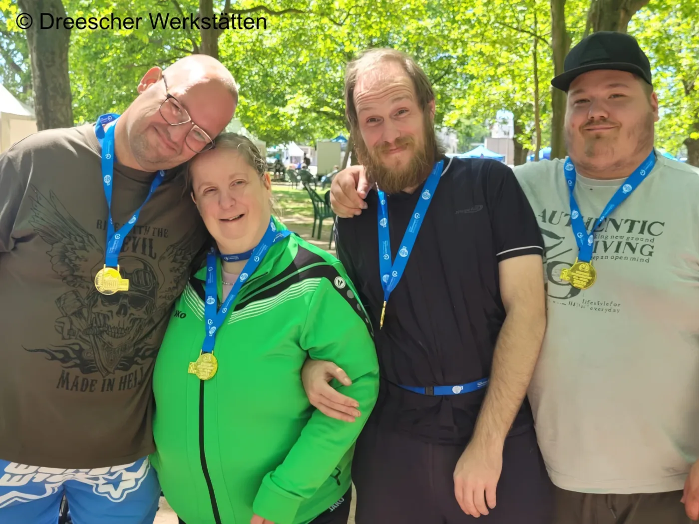 Großer Erfolg für inklusives Team der Dreescher Werkstätten Ivonne Weiß, Mathias Herbrich, Enrico Wolk und Chris Skorupski haben es geschafft! Mit großem Einsatz, Teamgeist und Leidenschaft sicherte sich das inklusive Team der Dreescher Werkstätten den Titel bei der „Offenen Deutschen Meisterschaft der Lebenshilfe“ im Boccia. Das länderübergreifende und nachhaltige Sportprojekt fand vom 7. bis 9.